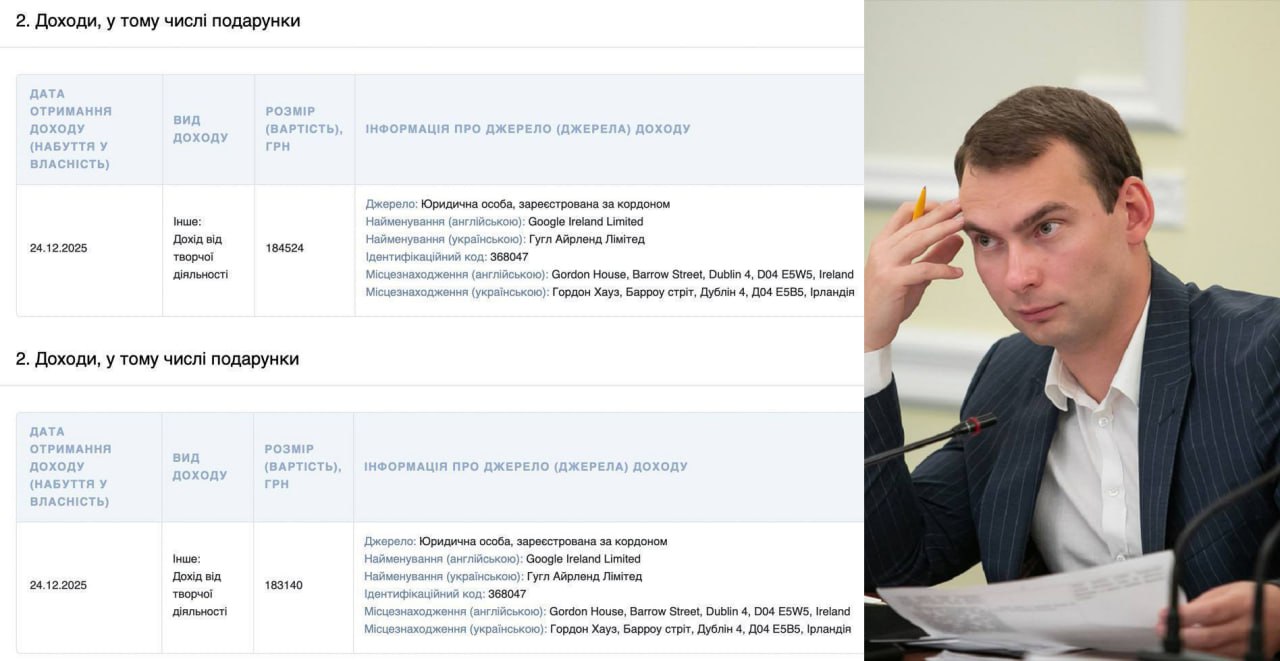 ⭕️Ідеться про два окремі надходження (https://t.me/sorosata/1474) від компанії GoogleIreland Limited — на 184 524 гривні та 183 140 гривень. У сумі це 367 664 гривні, що становить приблизно 9 тисяч доларів.