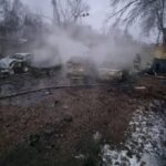 Зокрема, у Голосіївському районі падіння безпілотника спричинило загоряння трьох автомобілів на території СТО. Пожежу вже ліквідовано.