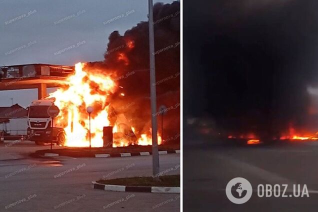 Внаслідок влучання на станції виникла масштабна пожежа, чорний дим від неї здійнявся високо в небо.