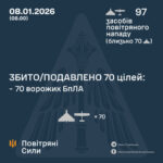 ЧИТАЙТЕ ТАКОЖ: Над Україною збили 70 із 97 російських дронів